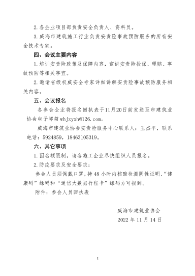 >關(guān)于召開威海市建筑施工行業(yè)安責險 培訓會議的通知