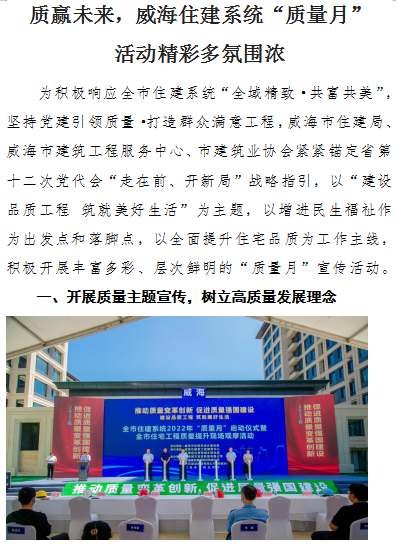 >質(zhì)贏未來,威海住建系統(tǒng)“質(zhì)量月”活動精彩多氛圍濃