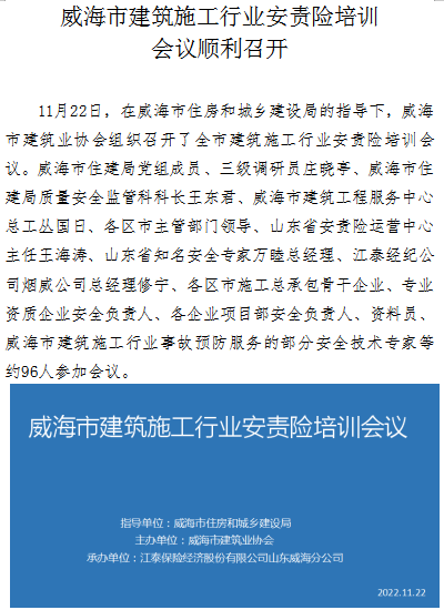 威海市建筑施工行業(yè)安責(zé)險(xiǎn)培訓(xùn)會議順利召開