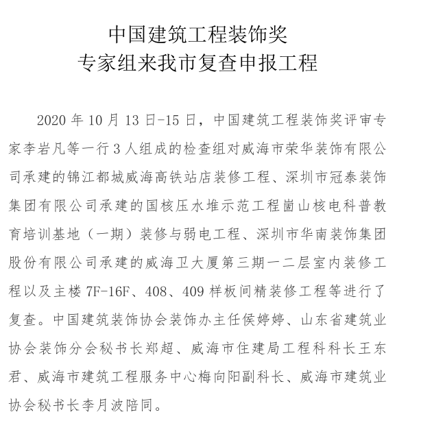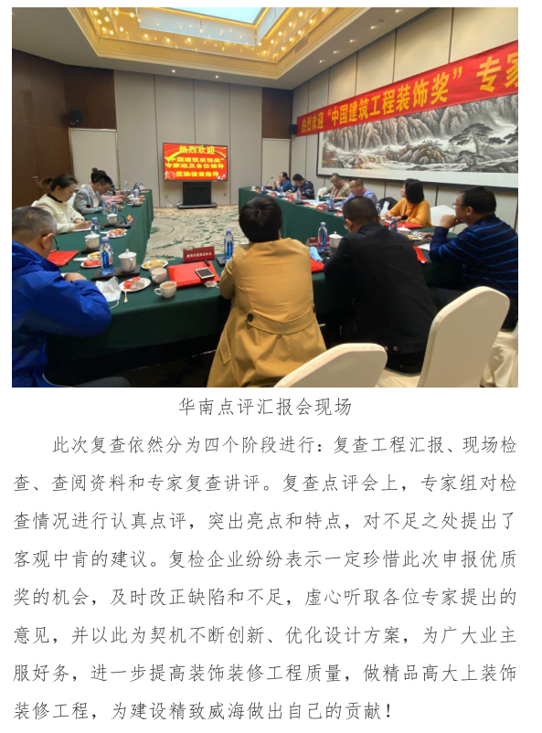 中國建筑工程裝飾獎專家組來我市復(fù)查申報工程