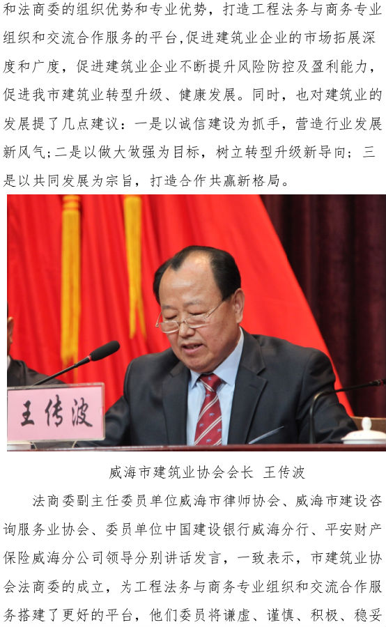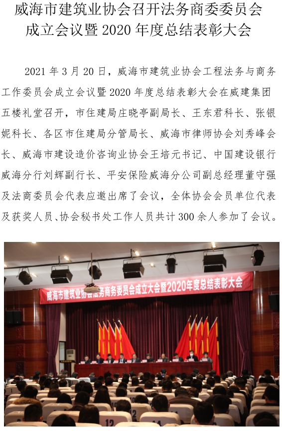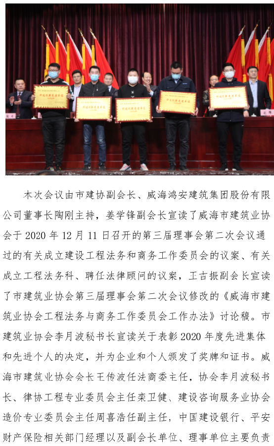 >威海市建筑業(yè)協(xié)會召開法務商委委員會 成立會議暨2020年度總結表彰大會