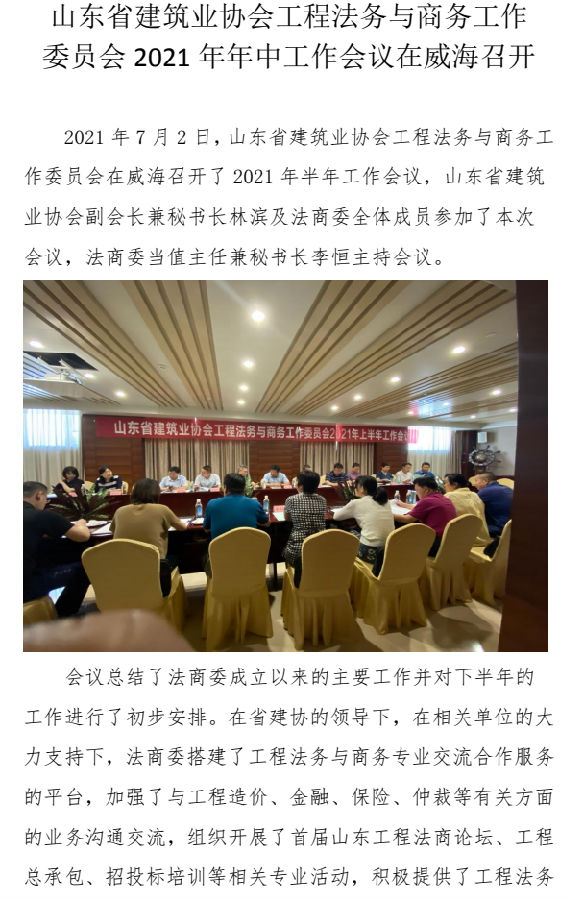 山東省建筑業(yè)協(xié)會(huì)工程法務(wù)與商務(wù)工作 委員會(huì)2021年年中工作會(huì)議在威海召開