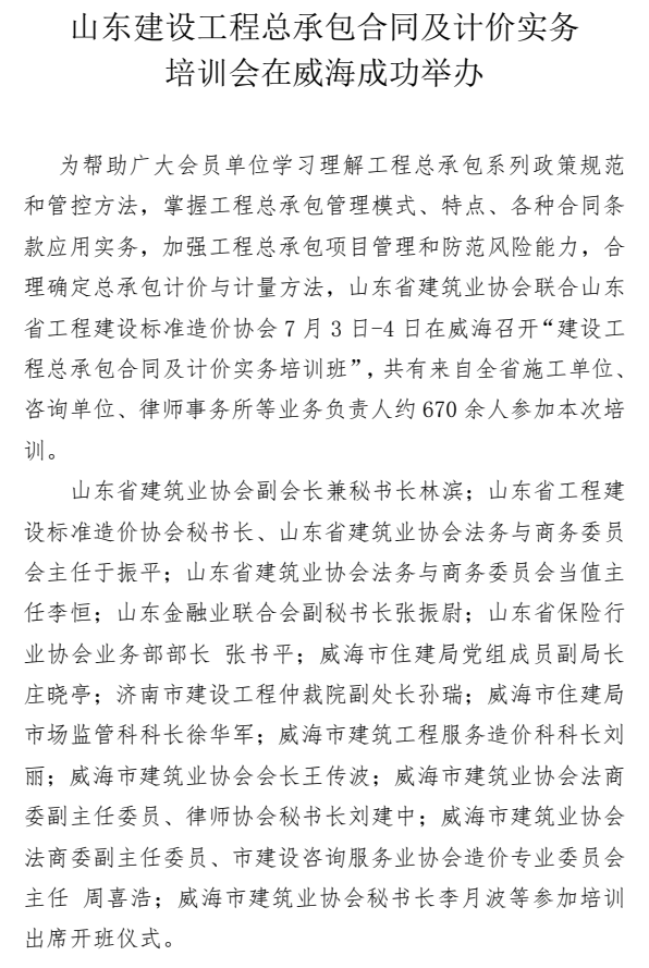 >山東建設(shè)工程總承包合同及計(jì)價(jià)實(shí)務(wù)培訓(xùn)會(huì)在威海成功舉辦
