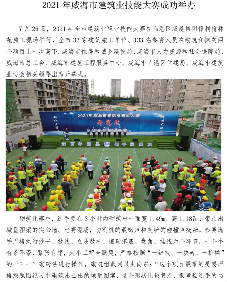 >2021年威海市建筑業(yè)技能大賽成功舉辦