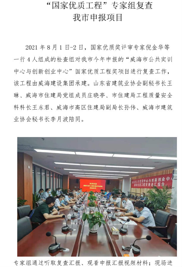 “國家優(yōu)質工程”專家組復查 我市申報項目