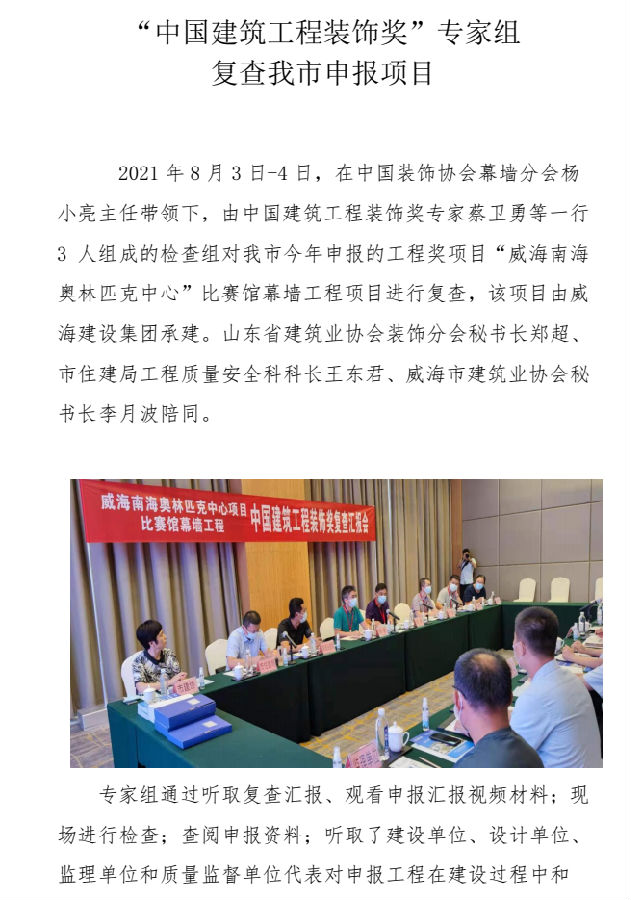 “中國建筑工程裝飾獎”專家組復(fù)查我市申報項目