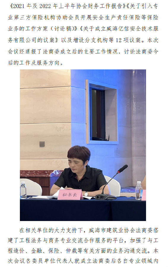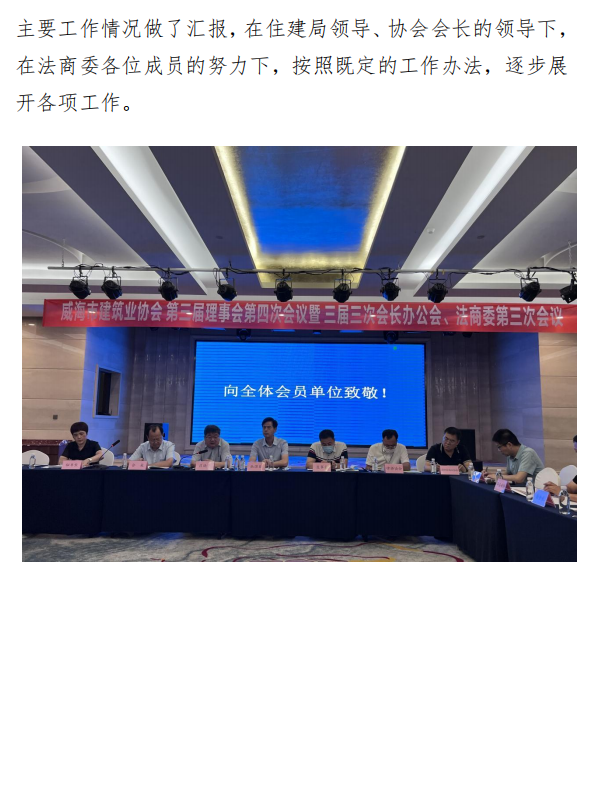 >威海市建筑業(yè)協(xié)會召開第三屆理事會 第四次會議暨三屆三次會長辦公會、 法商委第三次會議