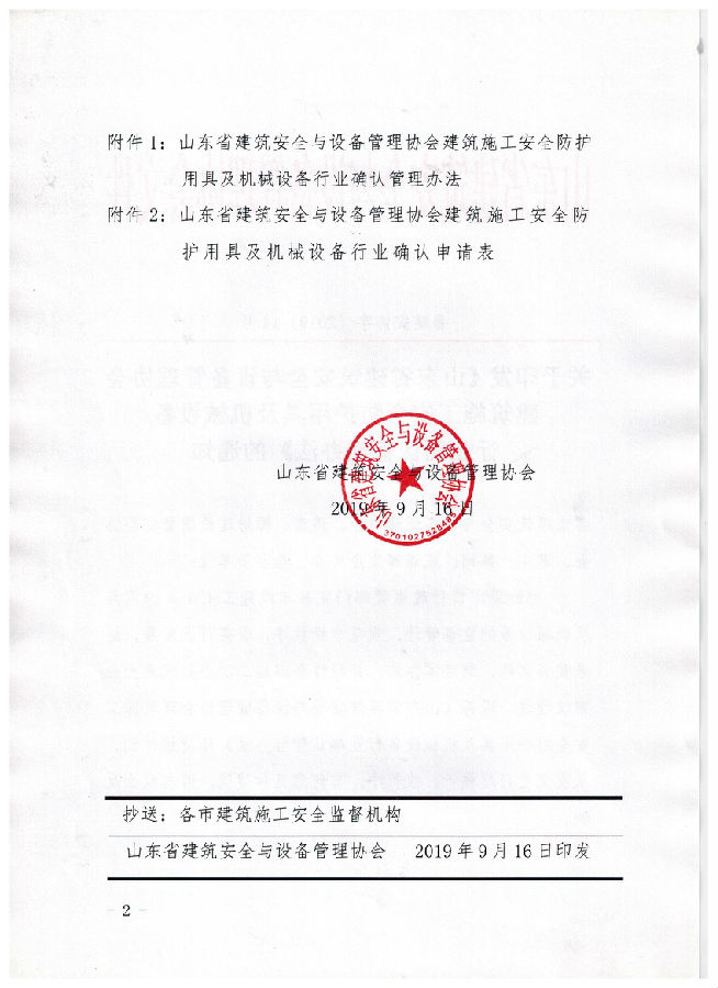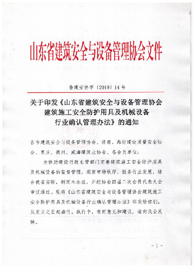 轉(zhuǎn)發(fā)山東省建筑安全與設(shè)備管理協(xié)會(huì)關(guān)于印發(fā)《山東省建筑安全與設(shè)備管理協(xié)會(huì)建筑施工安全防護(hù)用具及機(jī)械設(shè)備行業(yè)確認(rèn)管理辦法》的通知