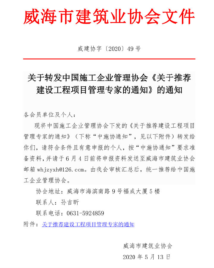 關于轉(zhuǎn)發(fā)中國施工企業(yè)管理協(xié)會《關于推薦 建設工程項目管理專家的通知》的通知