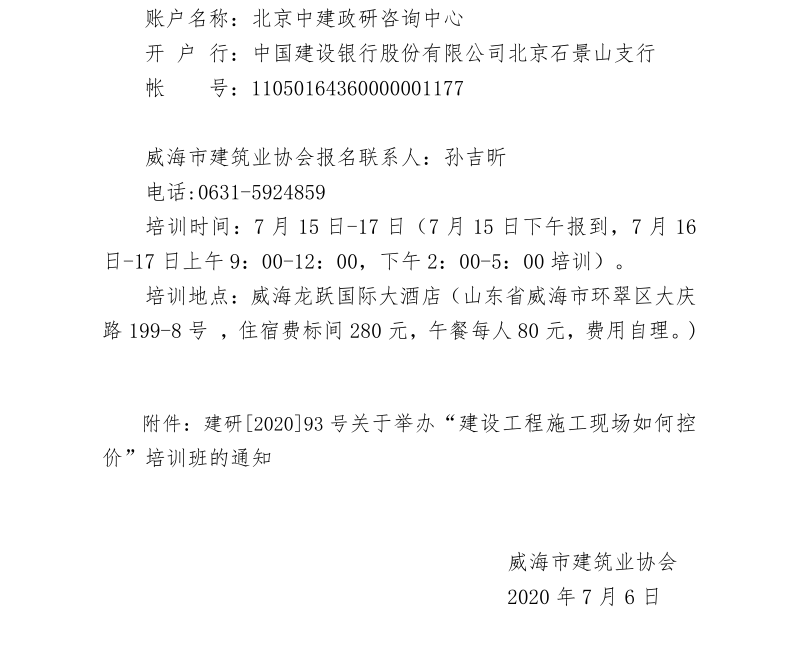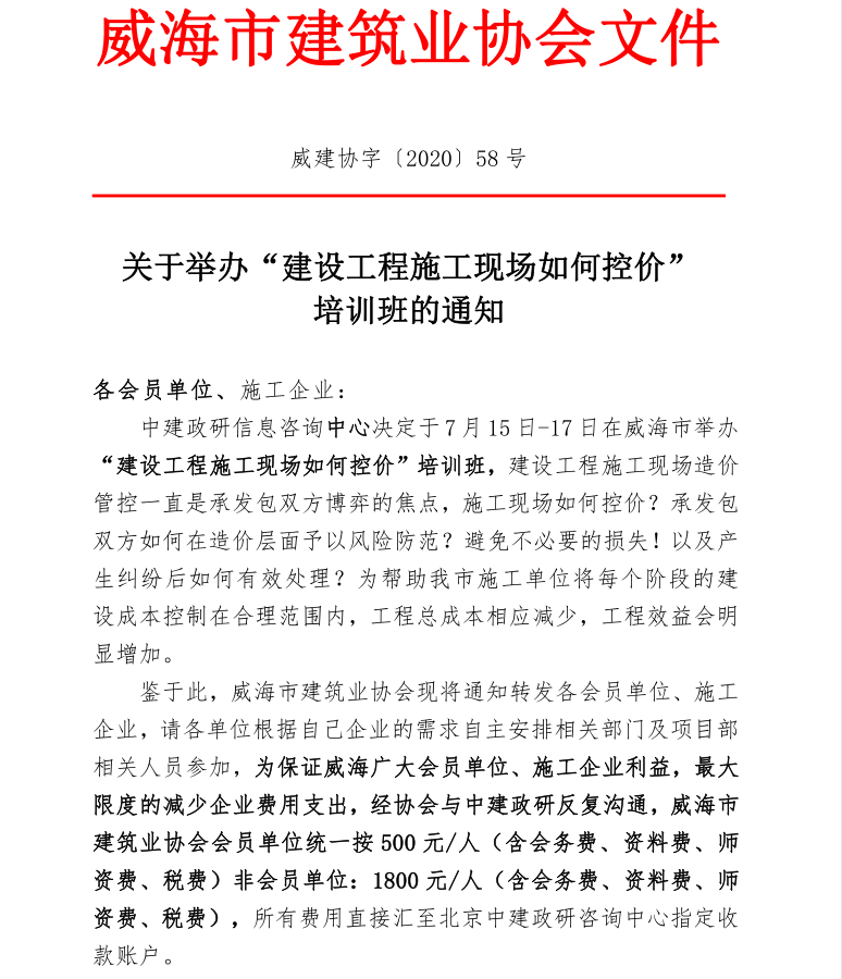 關(guān)于舉辦“建設(shè)工程施工現(xiàn)場如何控價”培訓(xùn)班的通知