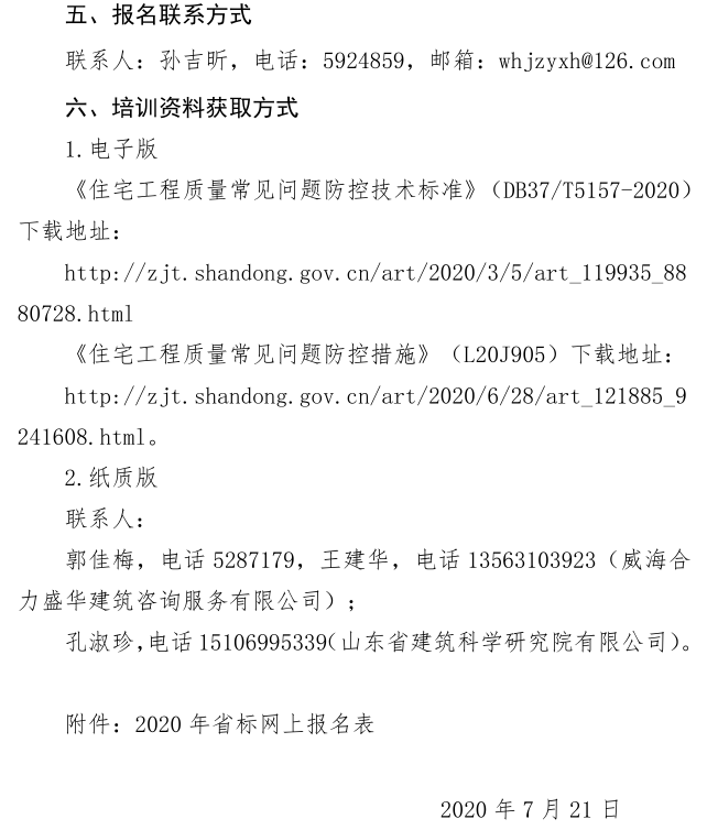 關(guān)于開展山東省工程建設(shè)標(biāo)準(zhǔn)《住宅工程 質(zhì)量常見問題防控技術(shù)標(biāo)準(zhǔn)》和山東省建筑標(biāo)準(zhǔn)設(shè)計圖集《住宅工程質(zhì)量常見問題防控措施》線上培訓(xùn)的通知
