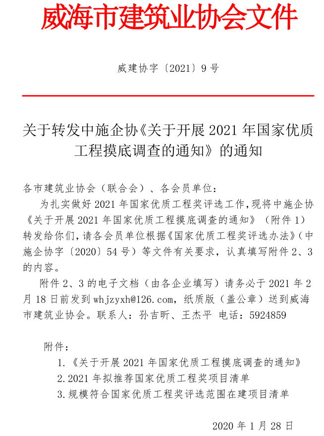 關于轉發(fā)中施企協(xié)《關于開展2021年國家優(yōu)質(zhì)工程摸底調(diào)查的通知》的通知