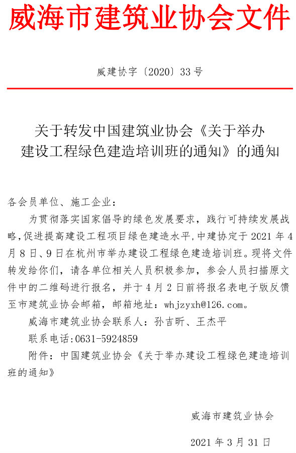 >關(guān)于轉(zhuǎn)發(fā)中國建筑業(yè)協(xié)會《關(guān)于舉辦 建設(shè)工程綠色建造培訓(xùn)班的通知》的通知