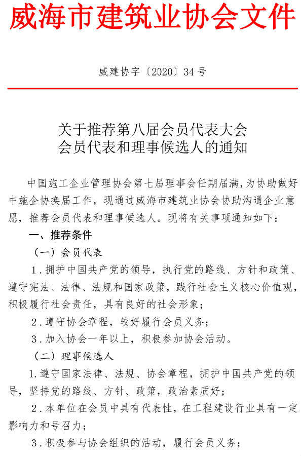 關于推薦第八屆會員代表大會 會員代表和理事候選人的通知