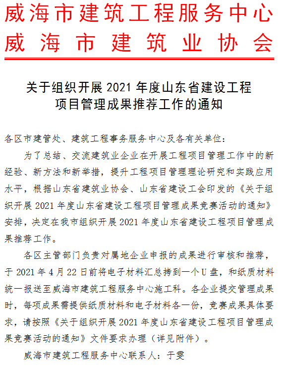 關(guān)于組織開展2021年度山東省建設(shè)工程 項目管理成果推薦工作的通知