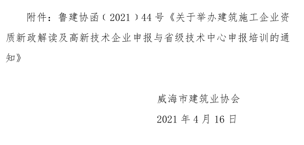 關于轉發(fā)山東省建筑業(yè)協(xié)會《關于舉辦建筑施工企業(yè)資質新政解讀及高新技術企業(yè)申報與省級技術中心申報培訓的通知》的通知
