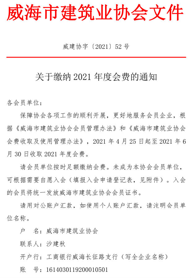 >關(guān)于繳納2021年度會(huì)費(fèi)的通知