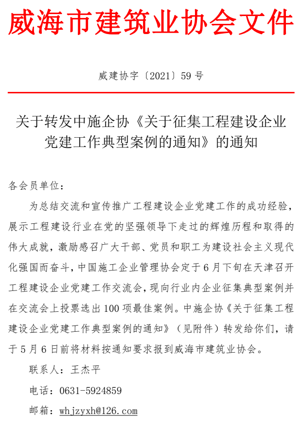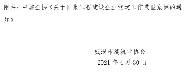 關于轉發(fā)中施企協(xié)《關于征集工程建設企業(yè) 黨建工作典型案例的通知》的通知