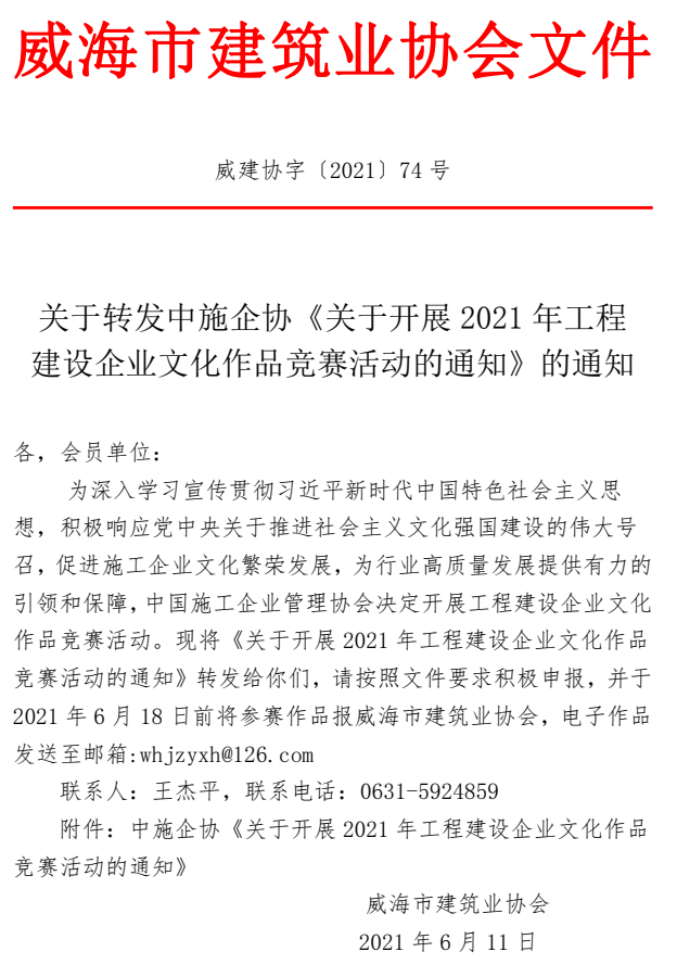 >關(guān)于轉(zhuǎn)發(fā)中施企協(xié)《關(guān)于開展2021年工程 建設(shè)企業(yè)文化作品競賽活動(dòng)的通知》的通知