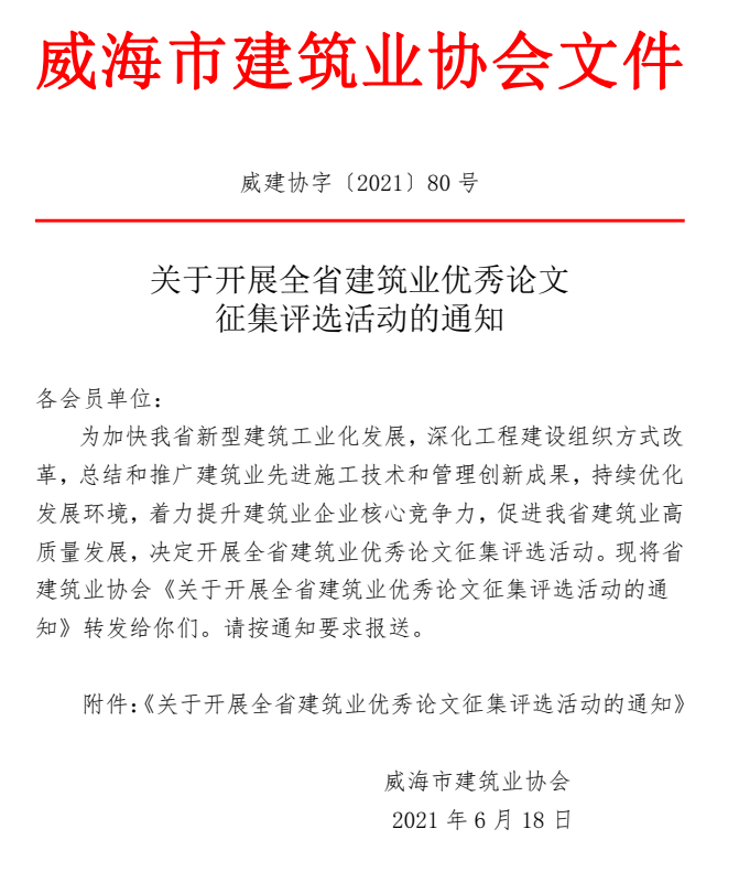 關(guān)于開展全省建筑業(yè)優(yōu)秀論文 征集評選活動的通知