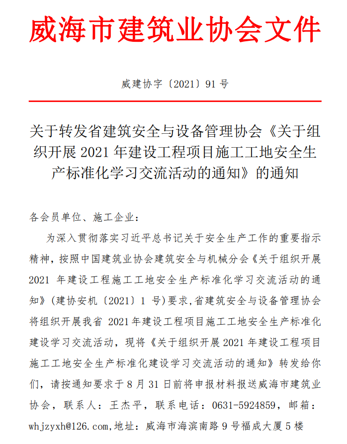 關(guān)于轉(zhuǎn)發(fā)省建筑安全與設(shè)備管理協(xié)會《關(guān)于組織開展2021年建設(shè)工程項(xiàng)目施工工地安全生產(chǎn)標(biāo)準(zhǔn)化學(xué)習(xí)交流活動的通知》的通知