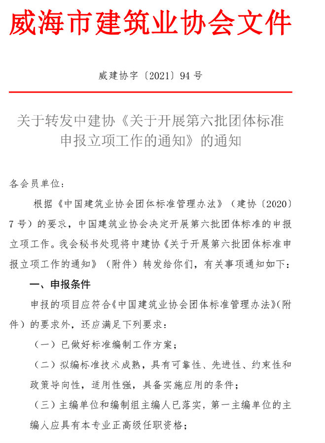 >關(guān)于轉(zhuǎn)發(fā)中建協(xié)《關(guān)于開展第六批團體標(biāo)準(zhǔn) 申報立項工作的通知》的通知 ?