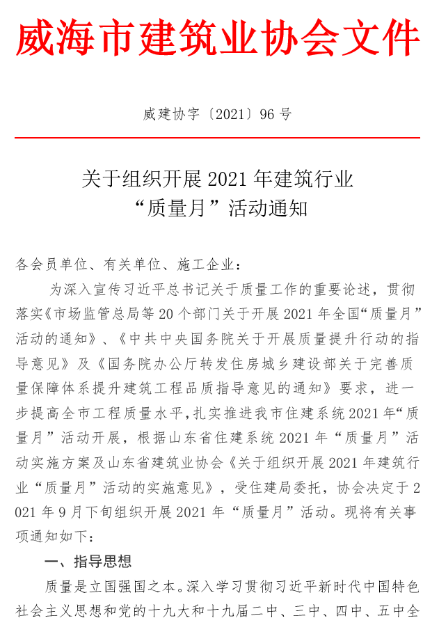 關(guān)于組織開(kāi)展2021年建筑行業(yè) “質(zhì)量月”活動(dòng)通知