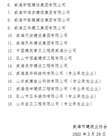 威海市建筑業(yè)協(xié)會(huì)關(guān)于表彰2021年度威海市建筑業(yè)先進(jìn)單位的決定