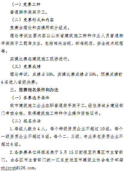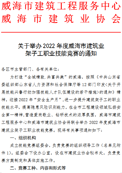 >關(guān)于舉辦2022年度威海市建筑業(yè)架子工職業(yè)技能競(jìng)賽的通知
