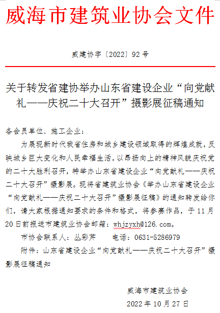 關(guān)于轉(zhuǎn)發(fā)省建協(xié)舉辦山東省建設(shè)企業(yè)“向黨獻禮——慶祝二十大召開”攝影展征稿通知