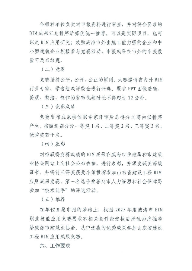 關(guān)于開展威海市建筑信息模型技術(shù)員(BIM)職業(yè)技能應(yīng)用競賽的通知