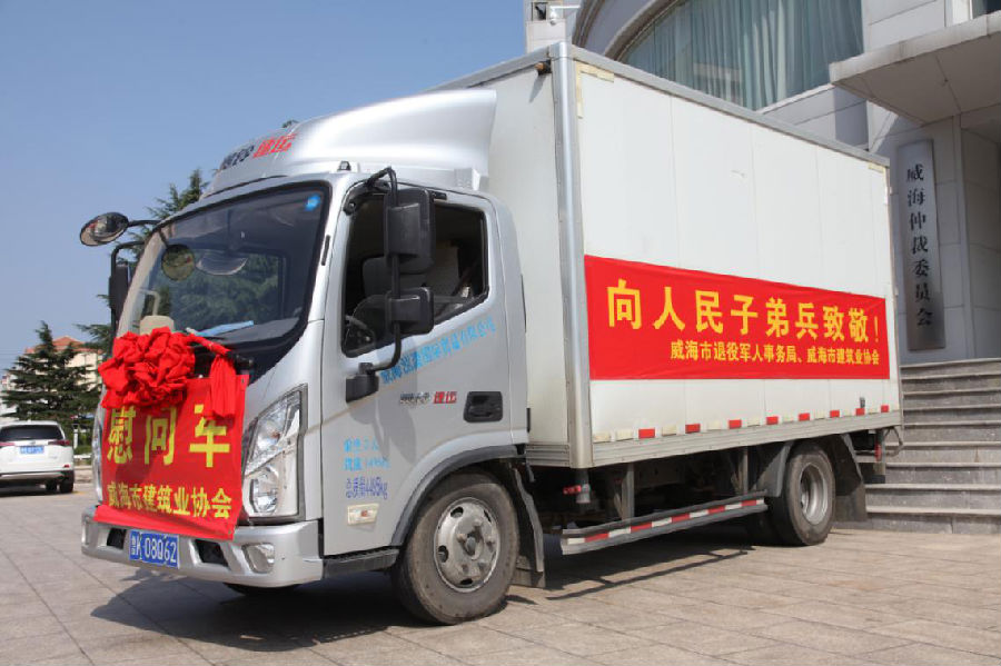 7月30日上午,威海市建筑協(xié)會(huì)聯(lián)合威海建設(shè)集團(tuán)股份有限公司、威海國際經(jīng)濟(jì)合作股份有限公司、威海天安建設(shè)集團(tuán)有限公司、威海銀鵬建設(shè)集團(tuán)股份有限公司、迎順建設(shè)集團(tuán)有限公司、山東榮城建筑集團(tuán)有限公司、榮成市方大建設(shè)有限公司、山東鳴海防水集團(tuán)有限公司、威海鴻安建筑集團(tuán)有限公司等九家企業(yè)代表,一行十四人冒著酷暑,在威海市建筑業(yè)協(xié)會(huì)李月波秘書長和趙明海副會(huì)長的帶領(lǐng)下,先后來到威海市退役軍人事務(wù)局和中國人民解放軍威海軍分區(qū)進(jìn)行慰問。