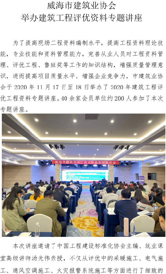 >威海市建筑業(yè)協(xié)會舉辦建筑工程評優(yōu)資料專題講座