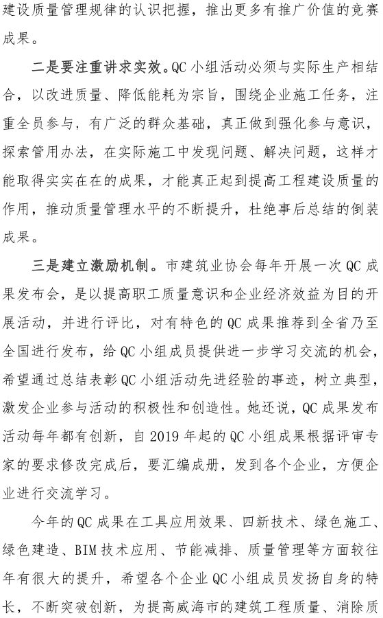 >威海市建筑業(yè)協(xié)會舉辦 2021年度威海市建筑業(yè)QC小組成果發(fā)布會
