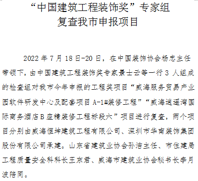 “中國建筑工程裝飾獎”專家組復(fù)查我市申報(bào)項(xiàng)目