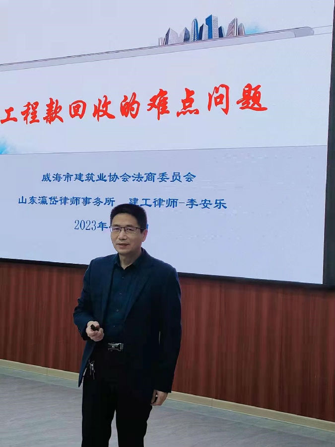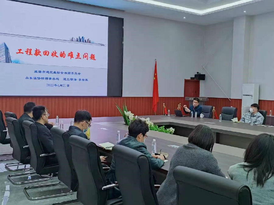 此次培訓會意在幫助企業(yè)解決工程款回收過程中遇到的問題、企業(yè)在回收工程款時應注意的事項、應做好哪些準備工作防范相應法律風險、指導企業(yè)聘用什么樣的律師有助于回收工程款。威海市建筑業(yè)協會李安樂律師對疫情對工程款回收的影響、合同關系與工程款回收、工程質量與工程款回收、合同效力與工程款回收等12個方面進行了詳細的講解