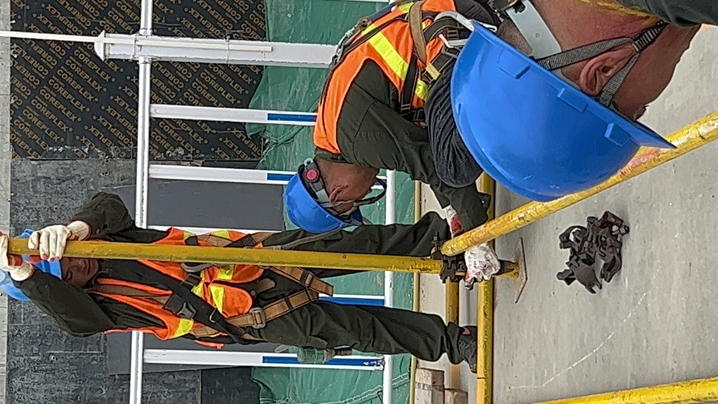 實(shí)際操作技能考試分23個(gè)小組分三個(gè)階段進(jìn)行比賽,參賽人員首先穿戴相關(guān)防護(hù)用品,安全帽安全帶等,每位選手都在規(guī)定的時(shí)間能完成防護(hù)用品的穿戴;第二階段-滿堂支撐架的搭設(shè):參賽人員開(kāi)始按照?qǐng)D紙搭設(shè)滿堂支撐架,過(guò)程中裁判員將對(duì)搭設(shè)過(guò)程中的規(guī)范操作進(jìn)行動(dòng)態(tài)評(píng)分,搭設(shè)結(jié)束后裁判員對(duì)搭設(shè)成果進(jìn)行評(píng)分;第三階段-外腳手架的搭設(shè):參賽人員開(kāi)始按照?qǐng)D紙搭設(shè)外腳手架,過(guò)程中裁判員將對(duì)搭設(shè)過(guò)程中的規(guī)范操作進(jìn)行動(dòng)態(tài)評(píng)分,搭設(shè)結(jié)束后裁判員對(duì)搭設(shè)成果進(jìn)行評(píng)分,大賽裁判長(zhǎng)宮海波表示,實(shí)操競(jìng)賽的幾個(gè)項(xiàng)目綜合考驗(yàn)了參賽者的搭建的穩(wěn)定、精準(zhǔn)和速度等。