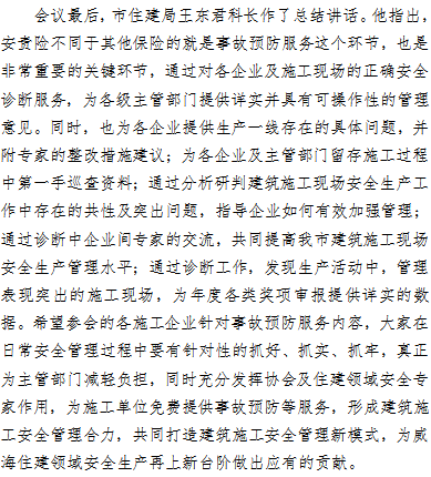 威海市建筑施工行業(yè)安責(zé)險(xiǎn)培訓(xùn)會議順利召開